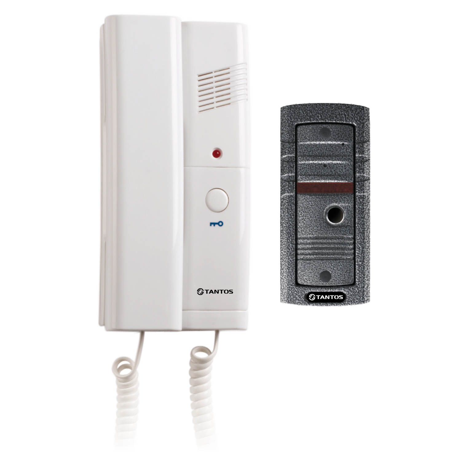 В комплект входят: вызывная панель с универсальным креплением (врезная обойма и козырек), трубка TS-203HA.